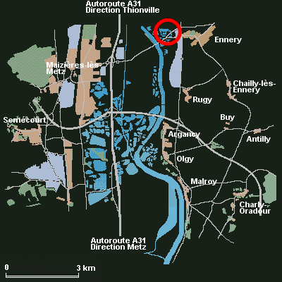 Les abords de la Moselle à hauteur d'Ennery comportent quelques étangs situés en zone boisée. Ces étangs privés dédiés à la pêche présentent une végétation rivulaire restreinte et peu variée ainsi qu'un ombrage important. Les odonates sont plus faciles à observer dans les friches exposées au sud. |