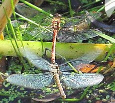 Photo : sympétrums striés pondant en tandem. |