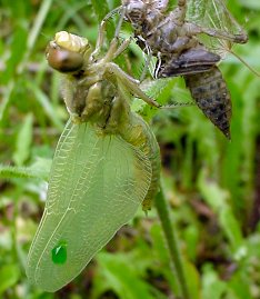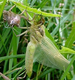Photos : émergence d'orthétrums réticulés (Orthetrum cancellatum) femelles. |