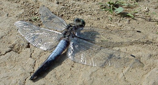 Photo : Orthétrum réticulé (Orthetrum cancellatum), mâle mature. Individu particulièrement sombre. Les orthétrums aiment se poser au sol en plein soleil. |