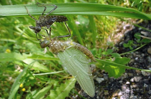 ÉmergenceLes oeufs de la Cordulie métallique éclosent 4 à 6 semaines après la ponte. Les larves passent 2 ou 3 ans dans l'eau et muent 13 fois. |