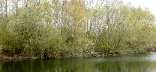 Photo : les saules et les aulnes commencent à se couvrir de feuilles au bord des étangs début avril. |