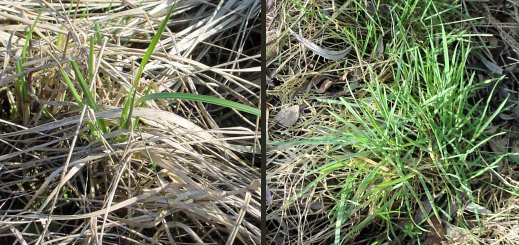 Photo : les molinies tardent à reverdir dans les zones de friche peu exposées au soleil au début du mois de mars. |