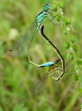 Photo : accouplement d'agrions élégants (Ishnura elegans). |
