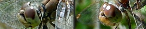 Photos : pour différencier les sympétrums femelles ou immatures, il est souvent nécessaire d'observer la face, en particulier la ligne noire qui descend devant les yeux. |