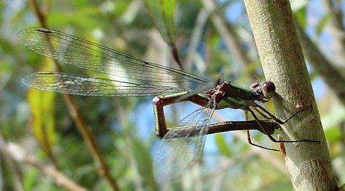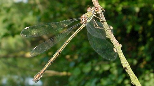 Lestes viridis, Femelles maturesLes lestes verts (Lestes viridis) femelles ont un abdomen plus épais que celui des mâles. |