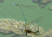 Photo : ponte en tandem d'agrions à larges pattes (Platycnemis pennipes). |