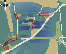 L'Agrion à larges pattes (Platycnemis pennipes) est une espèce d'ordinaire facile à trouver dans toutes les zones ouvertes à végétation dense proches de l'eau, mais l'espèce n'est présente qu'en effectifs modestes autour des étangs d'Ennery. Il doit s'y contenter de petites zones d'herbes hautes et de ronciers, en dehors des abords de la route départementale. |