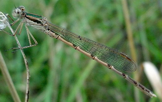 Les lestes bruns (Sympecma fusca) immatures présentent une coloration verte métallique sur le thorax.